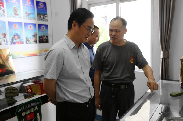 共回首,忆往昔。在六0一社区复转军人之家,王利波详细了解了复转军人之家的建设情况,认真翻阅了相关资料,并与参战老兵亲切交谈,询问他们的身体状况及生活问题。他强调,要进一步建设好复转军人之家,完善平台功能,充分发挥作用,积极帮助复转军人解决生活中遇到的实际困难和问题,使他们切实感受到党委、政府的关怀和温暖,不断推动复转军人服务管理工作取得更好实效。
