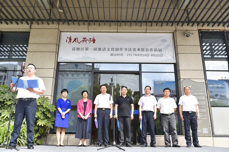 清风拂面扬正气,翰墨芬芳润入心。8月16日上午,荷塘区第一届廉洁文化创作书法美术摄影作品展在市规划展览馆举行。市委常委、宣传部长聂方红,市纪委副书记、监察局局长朱胜辉 ,市委宣传部常务副部长颜峻,株洲市文联主席周煦惠及区领导郑志富、陈三龙、张赐华、朱兴来参加活动。