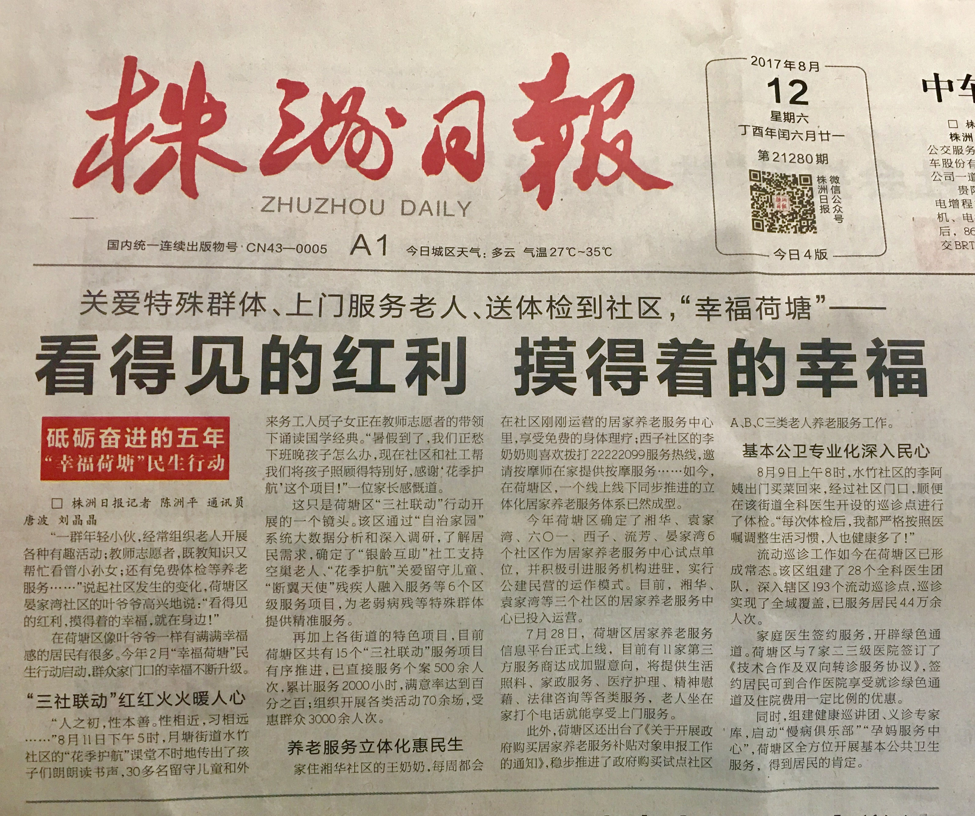 此外,荷塘区还出台了《关于开展政府购买居家养老服务补贴对象申报工作的通知》,稳步推进了政府购买试点社区A、B、C三类老人养老服务工作。