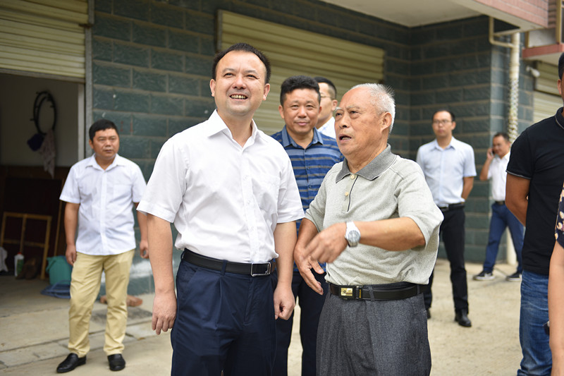 区委书记邬凌云听取金钩花园业主委员会负责人陈佳可老人的介绍