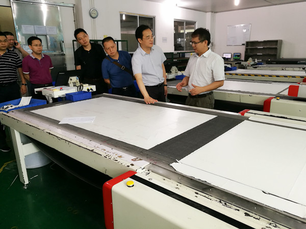 王利波一行在喜德盛碳纤维科技有限公司车间听取介绍