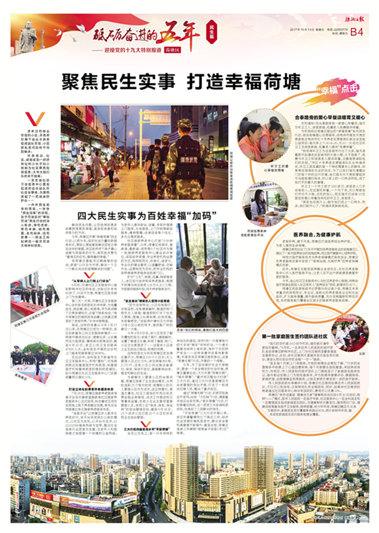 今年,荷塘区开展"幸福荷塘"民生行动,以民为本,组织社会力量创新服务形式,更贴心更细腻地解决百姓日常生活中的难题。该区政府俯下身子真心诚意为民服务的行为,被百姓点赞为"看得见的红利,摸得着的幸福。"