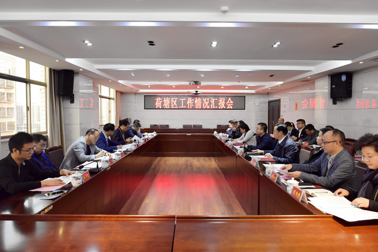 在随后召开的座谈会上,区委书记邬凌云从全区经济社会发展情况、“幸福荷塘”系列民生行动开展情况、区委领导和支持区人大工作情况等三个方面全面深入地汇报了荷塘区工作情况。今年以来,荷塘区突出在项目攻坚、产业招商、企业帮扶、深化改革和民生改善上精准发力,统筹推进园区建设、征地拆迁、“幸福荷塘”系列民生行动、矛盾化解、安全生产、环境保护、扶贫对口帮扶、防汛救灾等工作,全区经济社会发展保持稳中有进、进中向好的良好局面。