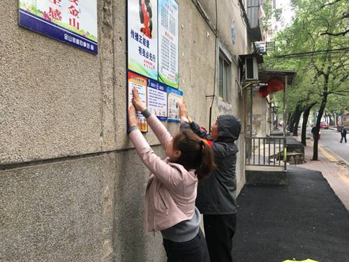 金山街道办事处全员上阵,张贴消防安全制度