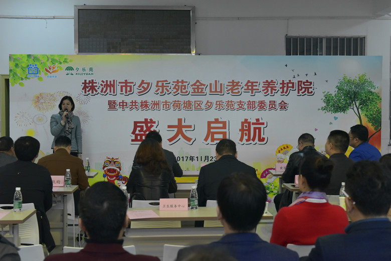 11月23日,株洲市夕乐苑金山养护院暨中共株洲市荷塘区夕乐苑支部委员会启动仪式在金山街道社区卫生服务中心举行。市民政局福利科科长高章明、区委副书记赖晓智、区人民政府副区长余鹏出席启动仪式。