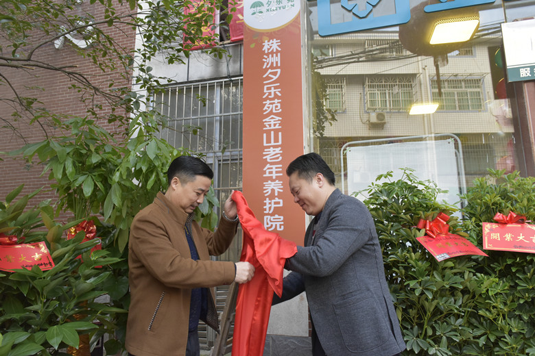 随后,与会领导一起为株洲市夕乐苑金山养护院、中共株洲市荷塘区夕乐苑支部委员会揭牌。