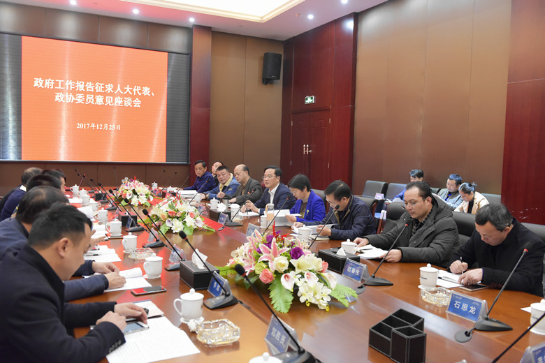 12月25日,区委副书记、区长王利波主持召开座谈会,听取2018年《政府工作报告(征求意见稿)》意见和建议。区人大常委会副主任张赐华,区政协副主席、区工商联(总商会)主席肖宏琳出席会议。