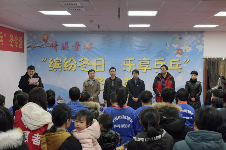1月31日下午,“情暖童心——缤纷冬日,乐享乒乓”成长快乐冬令营活动在荷塘区海威乒乓球俱乐部举行。团市委书记梁天琛,荷塘区关工委主任、原人大主任胡开元,区文体旅游局局长唐斌,区老干局局长陈乐红,团市委团务部副部长何丰希,团区委书记赵虎,大同社工机构负责人,30名留守儿童、外来务工人员子女参加开营仪式。