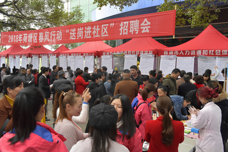 为有效缓解2018春季企业用工需求,做好企业与社区剩余劳动力的良好对接,满足各用人单位与求职者的需求,3月1日,荷塘区2018年首场“春风行动”在四三0俱乐部前坪举行,现场52家招聘企业携带1000多个就业岗位,吸引了众多辖区群众前来咨询求职,提前为广大群众送上一份暖意融融的春节就业大礼。
