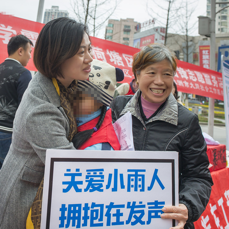 区委副书记赖晓智与小朋友紧紧相拥 (杨淑如 摄)