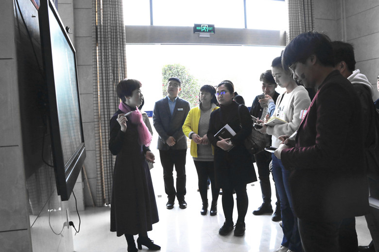 采访团认真的在听芙蓉社区负责人对于自治家园大数据的操作流程