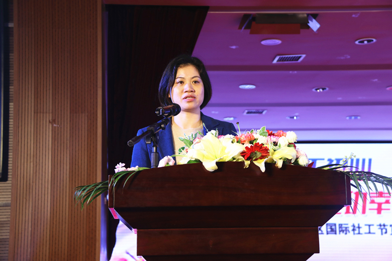活动中,赖晓智宣布荷塘区2018年国际社工日暨“牢记社工初心,建功幸福荷塘”主题宣传活动正式启动。她指出,推进“三社联动”项目是区委、区政府实施“幸福荷塘”系列民生行动的重要内容,是构建荷塘区社会治理体系的重要举措,也是提升群众幸福指数的重要手段。她强调,社会工作者要不忘初心,充满爱心,通过不懈努力让群众感受到党和政府的关心,感受到社会的温暖;要珍惜芳华,提升本领,唯有珍惜芳华,提升专业本领,才能在创造幸福的大道上“阔步前行”。要扎根荷塘,引领风尚。期待有更多的朋友加入到荷塘区的社会工作队伍中来,汇聚荷塘正能量,引领社会新风尚,共浇荷塘幸福之花,共谱社会和谐之曲。
