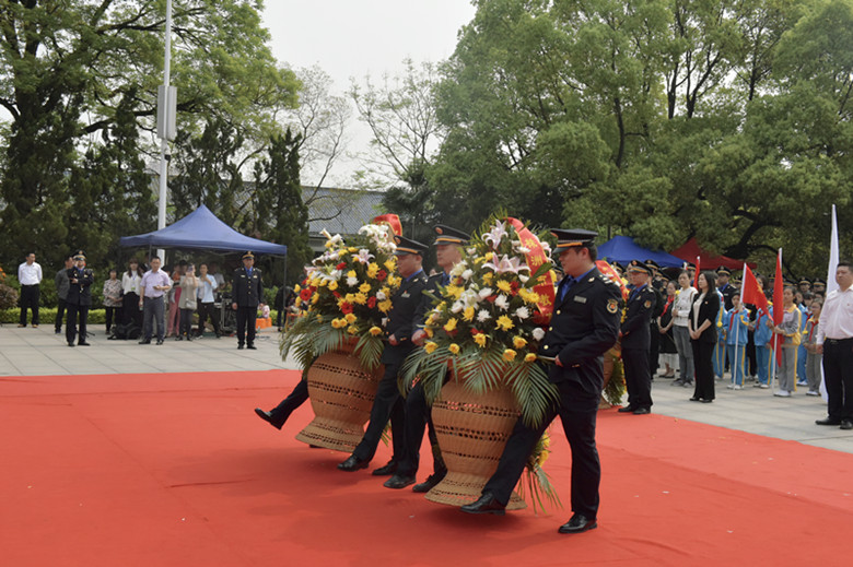 活动中,全体人员高唱国歌,礼兵向革命烈士纪念碑敬献花篮,各界代表向先烈行三鞠躬礼,沉痛悼念为中华民族的独立事业流血牺牲的革命先烈。
