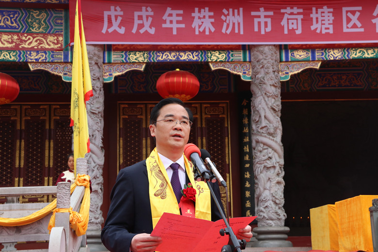 雨生百谷,万物升腾。4月20日,时值谷雨,戊戌年荷塘区各界祭祀炎帝陵典礼在炎陵县炎帝陵举行。祭祀典礼由区委书记邬凌云担任主祭人,区委副书记、区长王利波主持。炎陵县委副书记、县长文专文等炎陵县有关领导出席祭祖典礼。