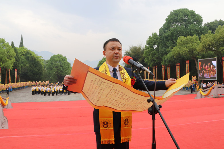 主祭人 区委书记邬凌云恭读祭炎帝陵文