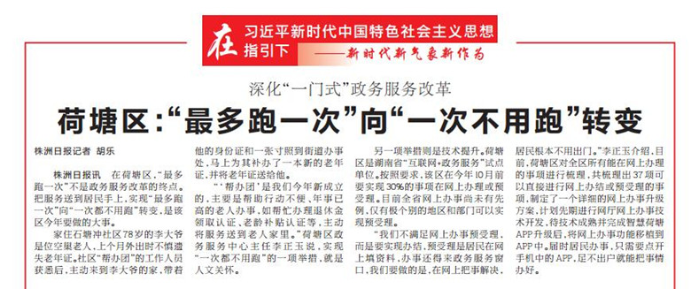 在荷塘区,“最多跑一次”不是政务服务改革的终点。把服务送到居民手上,实现“最多跑一次”向“一次都不用跑”转变,是该区今年要做的大事。