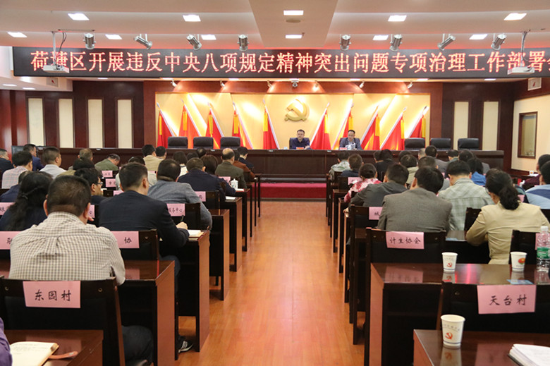 4月24日,我区召开违反中央八项规定精神突出问题专项治理工作部署会,区委书记邬凌云出席会议并讲话,全体在职县级领导,仙庾镇党委书记、镇长,各街道(管委会)党工委书记,区直部门主要负责人,各村支部书记参加会议。