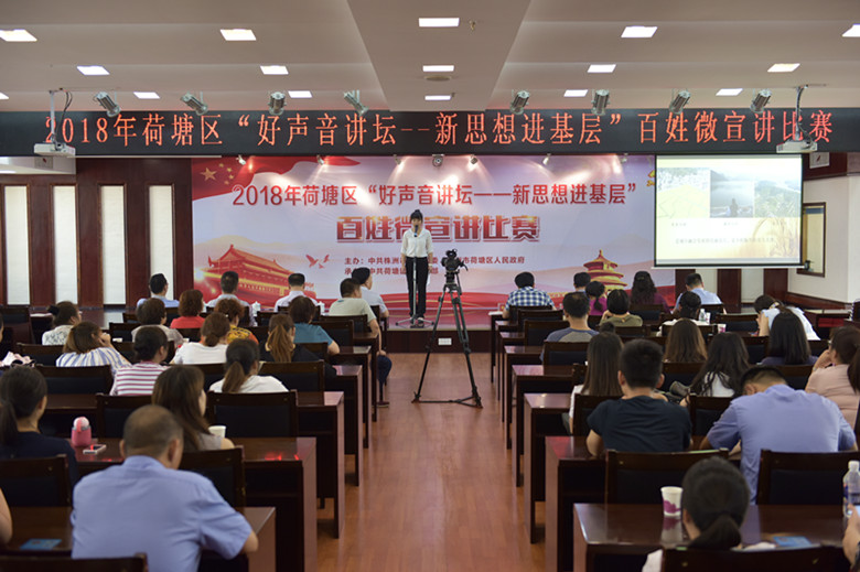 为推进习近平新时代中国特色社会主义思想在荷塘“天天见”“天天新”“天天深”,5月25日,荷塘区“好声音讲坛——新思想进基层”百姓微宣讲比赛决赛激烈上演。市委宣传部副部长汤建平,区委常委、宣传部长陈三龙出席活动。