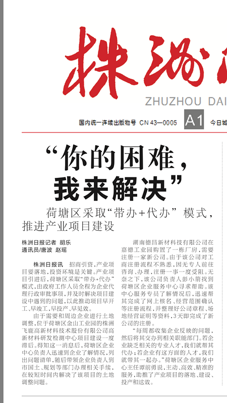 株洲日报讯 招商引资,产业项目要落地,投资环境是关键。产业项目引进后,荷塘区采取“带办+代办”模式,由政府工作人员全程为企业代理行政审批事项,并及时解决项目建设中遇到的问题,以此推动项目早开工、早竣工,早投产、早见效。