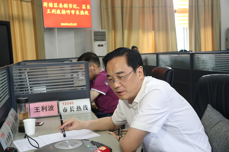 “您好,我是王利波。请问贵姓?要反映什么问题?”6月13日上午9时,区委副书记、区长王利波来到市长热线,现场接听了14名来自荷塘区居民的电话,听取并受理居民反映的难点问题。