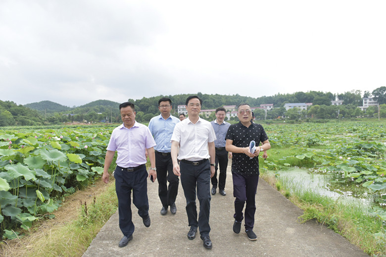 6月22日下午,顶着骄阳,区委副书记、区长王利波来到仙庾岭荷花基地现场调度2018年株洲市夏季乡村旅游节筹备工作。副区长程轶辉,区文化体育和旅游局、仙庾镇主要负责人陪同。