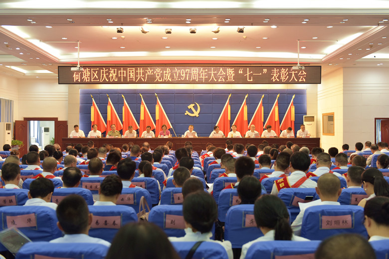 7月2日,荷塘区召开庆祝中国共产党成立97周年暨七一表彰大会,动员和激励全区各级党组织和广大党员干部,继承和发扬党的优良传统,切实加强党的建设,为全区经济社会发展提供坚强保障。全体在职县级领导,受表彰的先进个人和党组织,行业系统党(工)委书记及分管副职,区直部门和市直分支机构主要负责人,镇(街道、管委会)党政负责人、副书记及组织委员,村(社区)党组织书记参加会议。