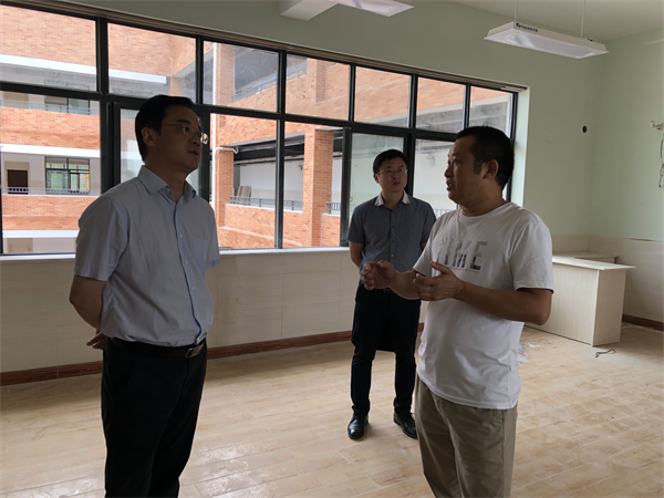 王利波先后来到了阅览室、报告厅、校园电视台、创客室、实验室等功能场所,察看了学校建设进展情况,听取了学校项目推进情况汇报,并就建设中的重难点问题提出了相关要求。