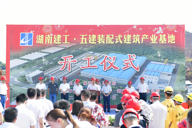 7月11日,湖南建工·五建装配式建筑产业基地举行开工仪式。市人民政府副市长谭可敏,湖南建工集团有限公司党委书记、董事长叶新平,湖南建工集团有限公司工会主席熊用机,市人民政府副秘书长王事兴,市住房和城乡建设局局长何安国,荷塘区委书记邬凌云,荷塘区委副书记、区长王利波,湖南建工集团五公司董事长、党委副书记叶有泉,湖南建工集团五公司总经理、湖南建工·五建装配式建筑产业基地建设指挥部指挥长龙兴出席开工仪式。
