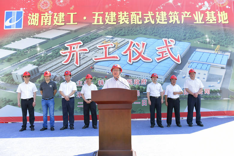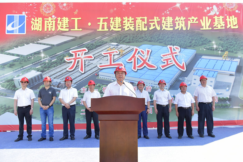 湖南建工集团有限公司党委书记、董事长叶新平先生宣布“湖南建工·五建装配式建筑产业基地”开工。