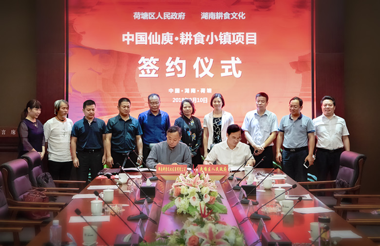 9月10日,荷塘区人民政府与湖南耕食文化发展有限公司招商引资合作框架协议签约仪式在金山新城举行。区委副书记、区长王利波,区委副书记赖晓智,区人大常委会主任陈友元,区政协主席何恒仁,副区长余鹏,湖南耕食文化发展有限公司董事长黄新华,加拿大耕食记文化发展有限公司董事长赵艳平等出席签约仪式。