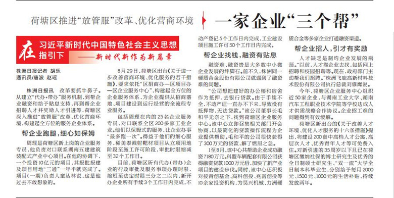改革要抓牛鼻子。从建立“代办+带办”服务机制,到帮企业融资和给予贴息支持,再到帮企业招聘人才并奖励人才引进等,荷塘区深入推进“放管服”改革,优化营商环境,构建起全方位的服务企业体系。