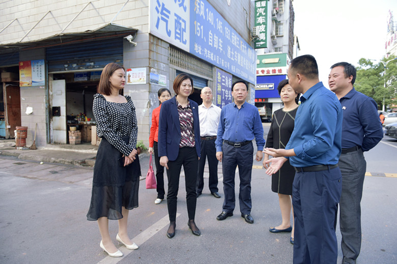赖晓智一行在汽车城社区周边督查环境卫生