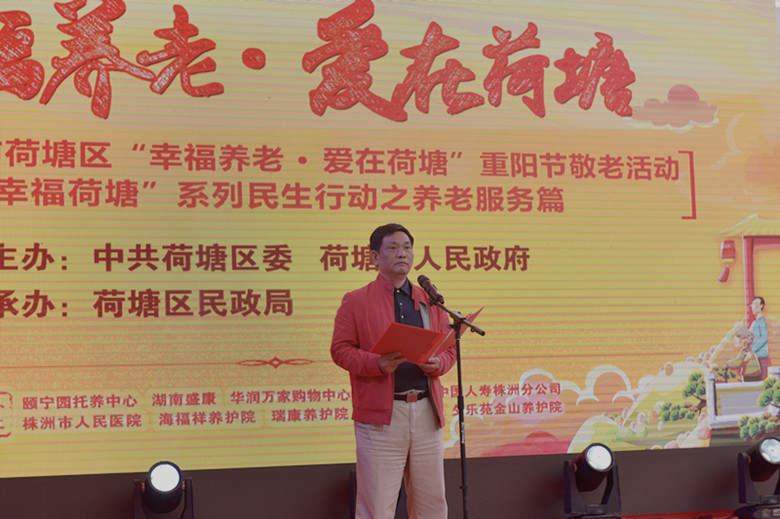 老吾老,以及人之老,尊老爱老,是中华民族的传统美德。10月17日,荷塘区2018年重阳节敬老活动暨“幸福荷塘”系列民生行动之养老服务篇活动在华润万家前坪举行。省老龄委主任许长林,省老龄办副主任科员黄超琼,市民政局党组书记、局长易湘东,区领导赖晓智、刘湘林、余鹏、方芳出席活动。