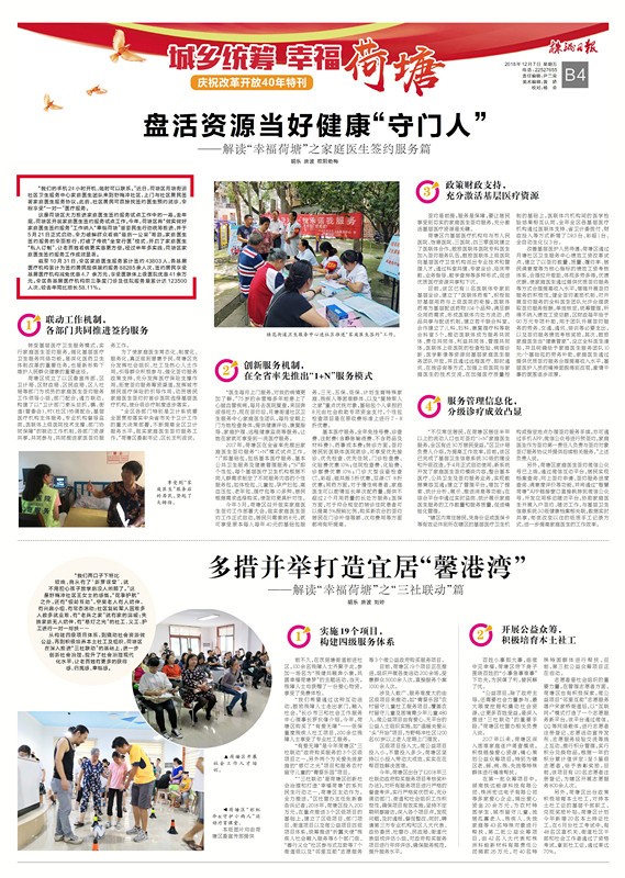 “不仅常住居民,在荷塘区居住半年以上的流动人口也可签约‘1+N’家庭医生服务,全区有近30万居民将直接受益。”荷塘区卫计局负责人介绍,为提高家庭医生工作效率,目前,该区已完成了基层卫生信息系统3.0版的建设和升级改造,于4月正式启动使用。新系统开发了家庭医生签约模块内容,并整合基本医疗、公共卫生及签约服务业务,实现数据兼容互通;建立了管理平台,增加了搜索、统计分析、展示、推送消息等功能;在综合平台中通过实时监测、统计展示家庭医生服务的工作数量和服务质量,促进精细化管理。
