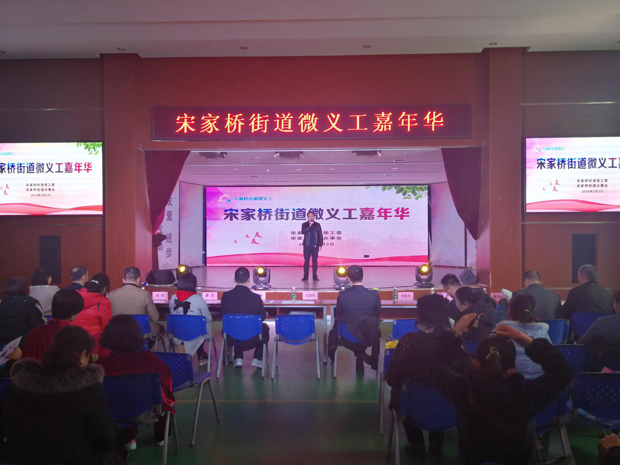 在3月5日“学雷锋纪念日”来临之际,为进一步弘扬“奉献、友爱、互助、进步”的志愿者精神,3月3日,在八达小学的大礼堂,宋家桥街道办事处与株洲市宋家桥微义工志愿服务中心联合举办了宋家桥街道微义工嘉年华活动,荷塘区区委常委、区委办主任文韶松,区委宣传部副部长唐波,区社管办主任张新春,区民政局副局长田映平,宋家桥街道全体党政班子成员,430医院、社区卫生服务中心及辖区学校负责人,以及参与街道“三社联动”和城乡帮困的所有项目社工机构、志愿者团队等300余人参与了此次活动。