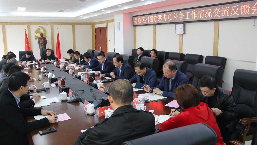 3月29日,我区召开扫黑除恶专项斗争工作情况交流反馈会。市扫黑除恶专项斗争第三督导组组长、市中院审委会专职委员肖青松针对督导中发现的问题进行了详细全面的反馈,并对我区的扫黑除恶专项斗争工作提出了几点建议,一是要加大对线索举报人的奖励力度,不断拓宽线索来源渠道;二是规定动作要到位,特色亮点要突出,符合荷塘的实际情况;三是工作方案要细致,工作责任要压实;四是要加大督查和追责的力量,加强对政法工作人员的教育培训;五是要实事求是,客观真实地反映工作情况;六是工作要取得明显效果,各单位要形成合力,齐抓共管,不断夺取扫黑除恶专项斗争的新胜利。