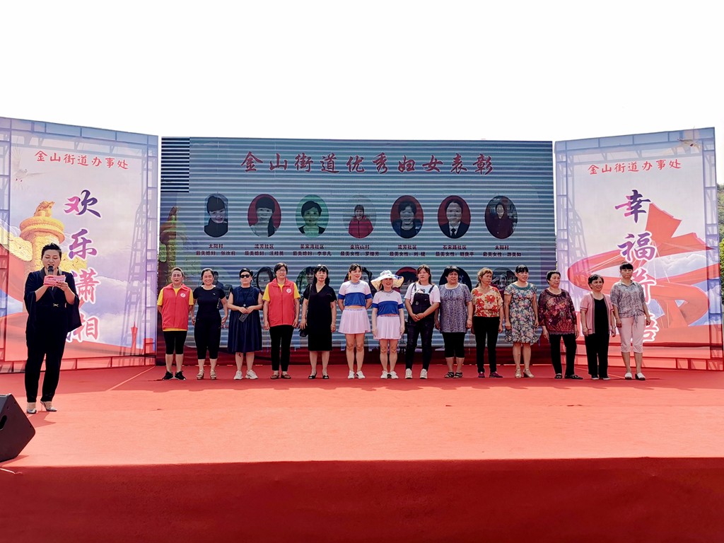 歌以咏志,诗以传情。文艺汇演上,各村、社区以少儿舞蹈《说唱中国红》、诗朗诵《幸福荷塘·魅力金山人》、葫芦丝独奏《月光下的凤尾竹》、歌伴舞《辣妹子》、舞蹈《不忘初心》等14个形式多样的节目,集中展现了魅力金山人的风采,更传达出表演者对党和国家的热爱。其中,朗诵表演《幸福荷塘·魅力金山人》以充沛的情感、丰富的内涵摘得一等奖,舞蹈《毛主席的光辉万寿无疆》、歌伴舞《辣妹子》获得二等奖。此外,活动还对最美媳妇、最美女性等14位金山街道优秀妇女典型代表进行了表彰。