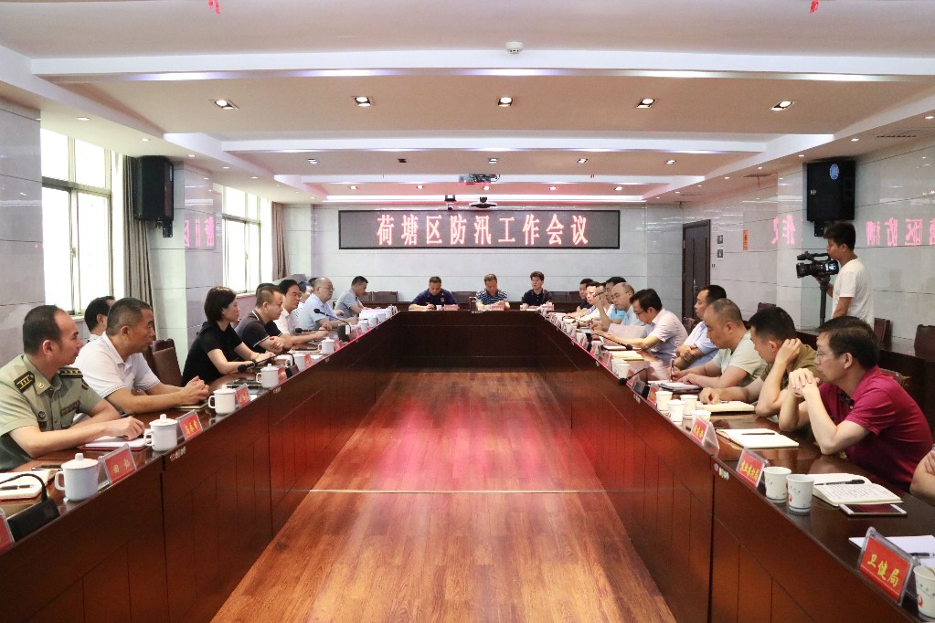 7月11日,荷塘区召开防汛工作会议,调度当前防汛抗灾相关工作,区领导邬凌云、王利波、赖晓智、陈友元、何恒仁及全体在家区委常委、区政府相关副区长出席会议。