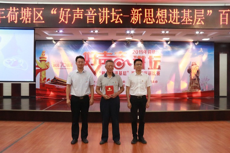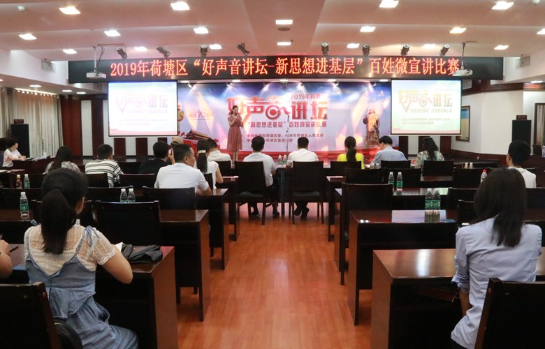 为进一步提升我区理论微宣讲水平,7月26日,荷塘区举行了2019年“好声音讲坛——新思想进基层”百姓微宣讲比赛。市委宣传部副部长许志汉,市委宣传部理论科科长尹姮,区委常委、宣传部长田灿出席活动。