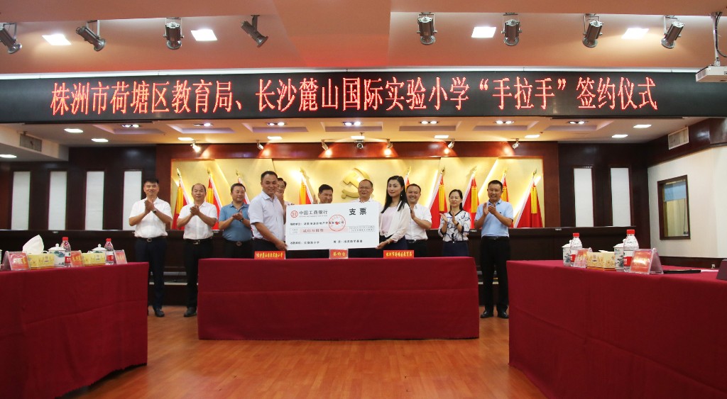 8月28日下午,荷塘区教育局与长沙麓山国际实验小学举行“手拉手”签约仪式。长沙市教育局党委书记、局长卢鸿鸣,株洲市教育局党委书记、局长吴安浩,荷塘区委书记邬凌云,荷塘区委副书记、区长王利波参加了签约仪式。