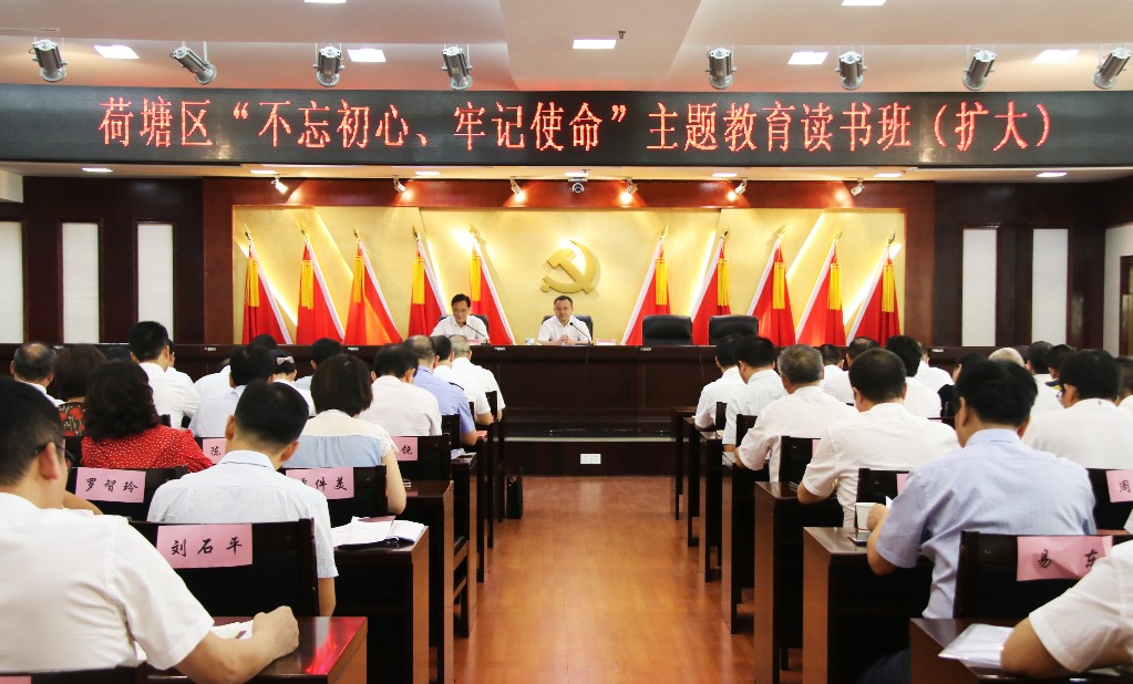 9月19日至9月26日,荷塘区举办区委常委班子“不忘初心、牢记使命”主题教育读书班(扩大)。全体在职县级领导,区直部门主要负责人,金城公司、金科公司董事长、总经理、监事会主席等参加学习,期间采取理论学习中心组学习、分组专题研讨、自学等多种方式,深入开展“不忘初心、牢记使命”主题教育,推动学习贯彻习近平新时代中国特色社会主义思想往深里走、往心里走、往实里走。