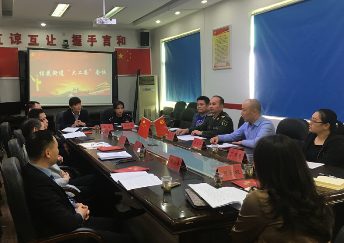 为加强和改进党的领导,推动城市基层党建区域化发展,建立起资源共享、优势互补、共驻共建的党建新格局,11月1日下午,桂花街道召开“大工委”会议,区委常委、武装部长、桂花街道“大工委”书记马永章和11位委员参加会议。