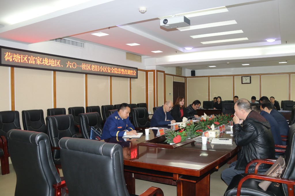 11月26日,荷塘区召开富家垅地区、六0一社区老旧小区安全隐患整改调度会议。区领导王利波、刘国梁、王冬、黄团结、陈柏文出席会议。