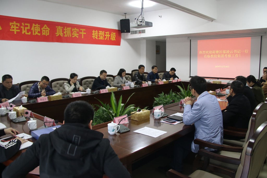随后,邬凌云一行来到市教投集团,双方就新形势下如何推进校企合作进行了座谈。市教投集团党委书记、董事长龙九文介绍了集团的校企合作工作开展情况,并结合教育部门要求以及荷塘区园区产业发展实际,对校企合作未来发展方向提出了思路、想法和措施。