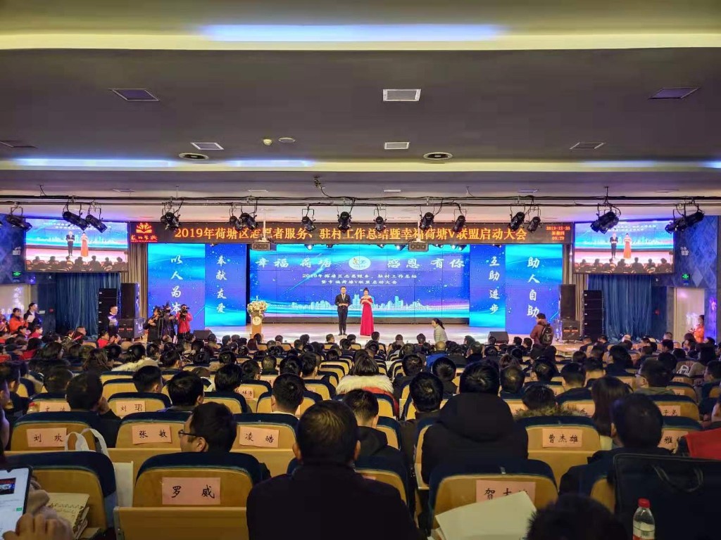 12月26日,荷塘区在美的学校举办2019年志愿服务、驻村工作总结暨幸福荷塘V联盟启动大会,市委副秘书长、市幸福办主任尹光良、市幸福办副主任庞慧、市委宣传部副部长、市文明办主任欧阳元初、市残联党组书记李克武、市残联理事长程轶辉、团市委副书记袁媛、市妇联副主席胡越,荷塘区全体在家县级领导出席大会。