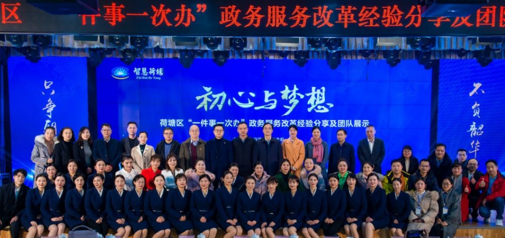 此次活动通过讲述工作故事、编排舞蹈、情景朗诵、RAP歌舞、礼仪展示等形式,展示了荷塘区四年来政务服务改革的具体历程和各项成果。近年来,荷塘区认真贯彻中央、省、市部署要求,遵循“把方便带给群众、把复杂交给系统、把高效留给政府”的服务理念,完成了将改革从“一门式”到“最多跑一次”,再向“一件事一次办”的转变升级,让老百姓在家门口、网上、手机就可以办成事、办好事,极大地提高了服务效率,提升了老百姓的获得感和幸福感。据统计,自改革以来,共接待群众50万余人次,累计受理业务35万余件,群众满意度超过99.9%。而所有的这些数据,正是荷塘区全体政务人共同努力的结果。
