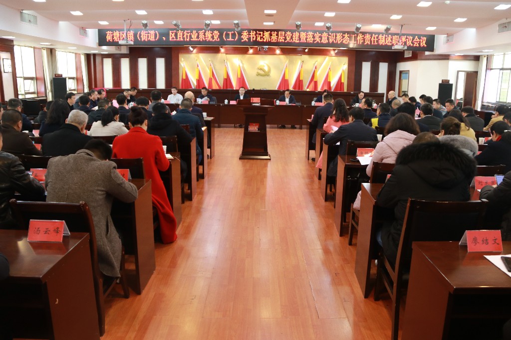 1月19日,荷塘区召开区镇(街道)、行业系统党(工)委书记履行基层党建和意识形态工作责任述职评议会议。市委组织部党教中心副主任伍艺到场指导。区领导邬凌云、王利波、赖晓智、陈友元、何恒仁、王顺安、刘国梁、郑志富、马永章、文韶松、成良池、田灿、余鹏参加会议。