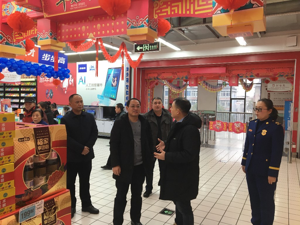区委常委、政法委书记成良池带队先后到大润发及步步高超市开展春节前安全生产检查。检查组一行实地查看了超市疏散通道、防火卷帘以及内部视频监控情况,详细了解超市的安全检查、应急处置等各项工作。成良池指出,春节临近,超市人流集中,安全生产问题容不得半点马虎。各单位要增强安全意识,树立底线思维,克服麻痹思想,切实做好日常安全防范工作,确保我区春节期间社会大局安全稳定,为全区群众营造安全和谐的社会环境。