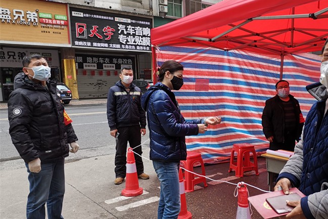 2月14日下午,区委副书记赖晓智深入荷塘区疫情防控重点管控的合泰片区督查疫情防控工作情况。