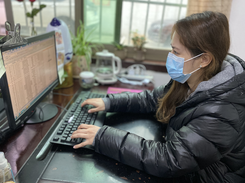 “大家克服一下,今晚继续加班把大数据后台反馈的重点人员信息核实清楚。”街道卫计办主任彭娟为大家加油打气。为了疫情信息和数据的真实准确,她常常忙到深夜。她是街道疫情防控数据统计的“战士”。茨菇塘街道有13个社区,78个防控卡口,她每天都要对排查出来的所有疫情数据进行审核汇总、分类统计,发现异常还需要一个个打电话进行核对;联系重点人员,了解返乡路线、车辆等轨迹,筛查接触人员;及时通知社区对待确认隔离人员落实居家隔离措施。